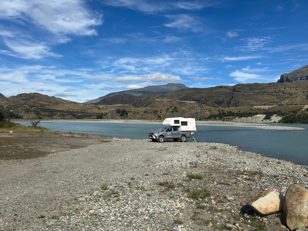 “Wild camping” is legal in Patagonia. This means you can camp pretty much anywhere, including on private land. We’ve been favoring riverside sites.Rio Baker. We are hanging out in the shade of our camper