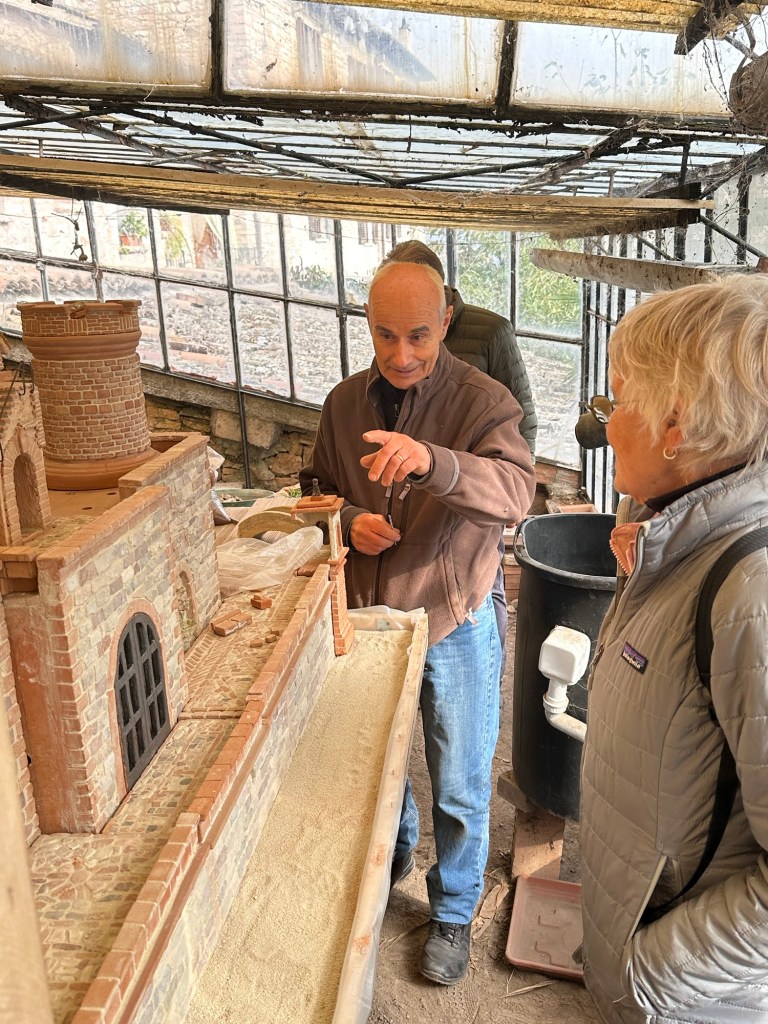 Pierluigi took us to his nearby workshop to see how he created his parts and assembled his medieval townscapes.