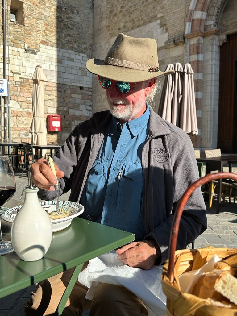 We visited a neighboring town for lunch and exploration.A garden and stream scene from a bridge nearby that could be in France or Holland or many other European locales.Ancient Roman hilltop ruins that no one goes to…but Martha and Doug knew of them.