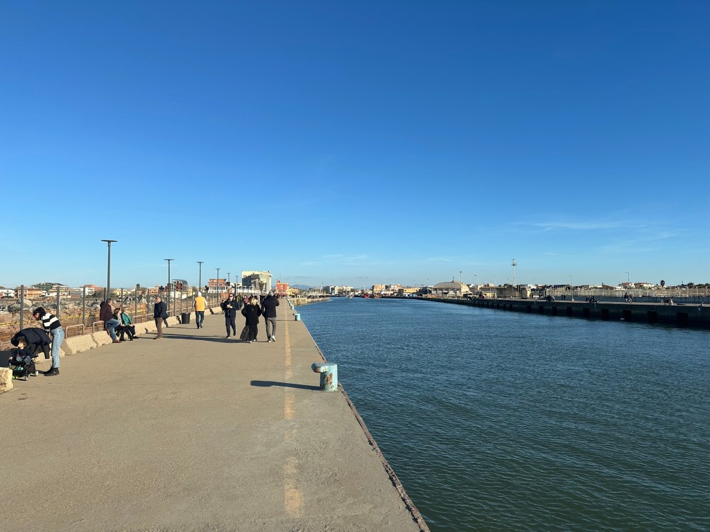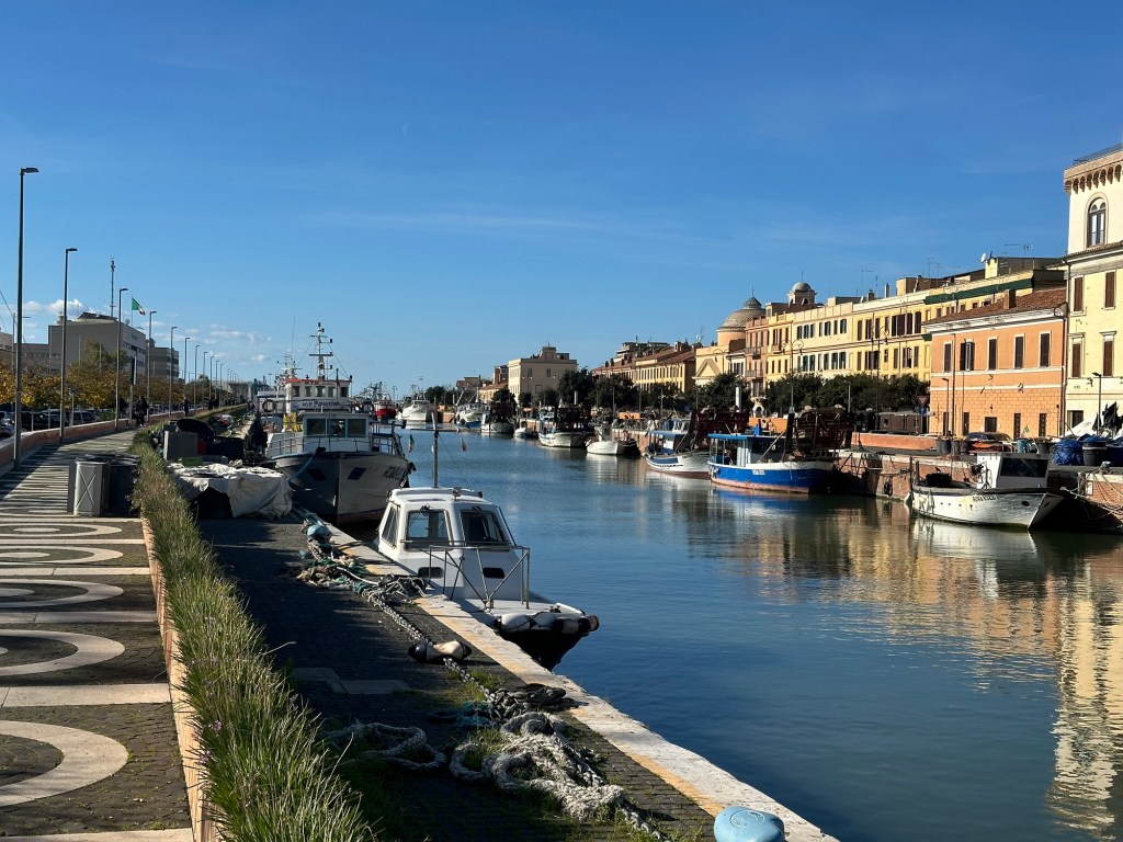 This is the estuary of a channel of the Tiber River at Fiumicino, which is the name of the town as well as the international airport nearby. (This is on the coast, west of Rome.) A scheduled national rail strike called for the day before my flight made it necessary for me to travel to Fiumicino a day early, instead of just the day before my morning flight.Many boats in the marinas here.Promenades on both sides of the river, with restaurants, hotels, and gelatarias.Pedestrian draw bridge allows sailboats access to the Tyrrhenian Sea (and beyond!!).Zuppa di Cozze – mussel soup. At a fancy seafood joint at the end of the waterway. Just excellent!Iconic stone pines in a city park. Such a beautiful, distinctive tree!