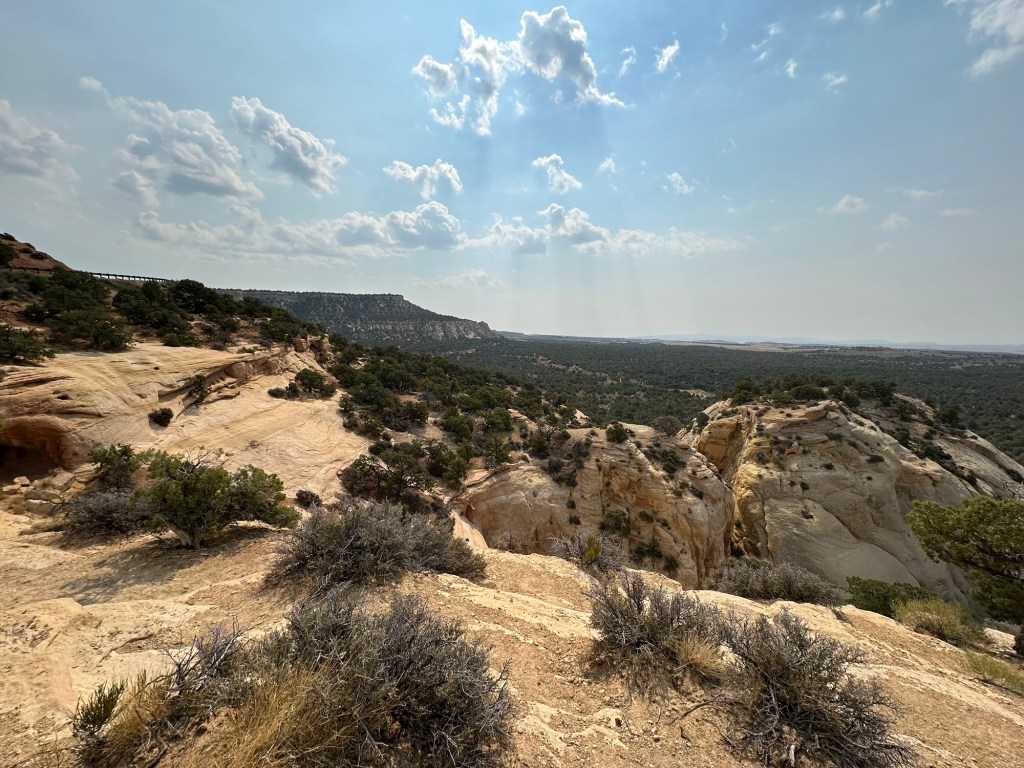 I am heading to Dinosaur National Monument through northern Colorado to Utah. Mesas, riparian rivers, exposed rock formations, erosion, and a lot of sagebrush. This is in the east unit of Dinosaur NM.