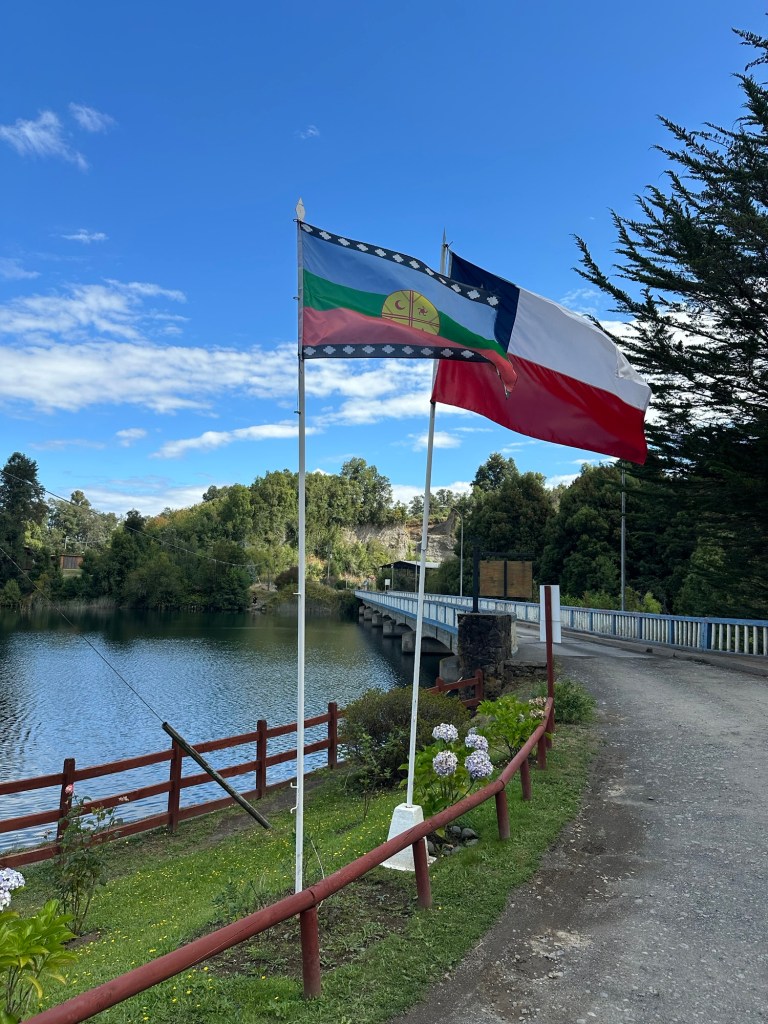 Chilean and Mapuche flags over the park. First time seeing Mapuche flag.