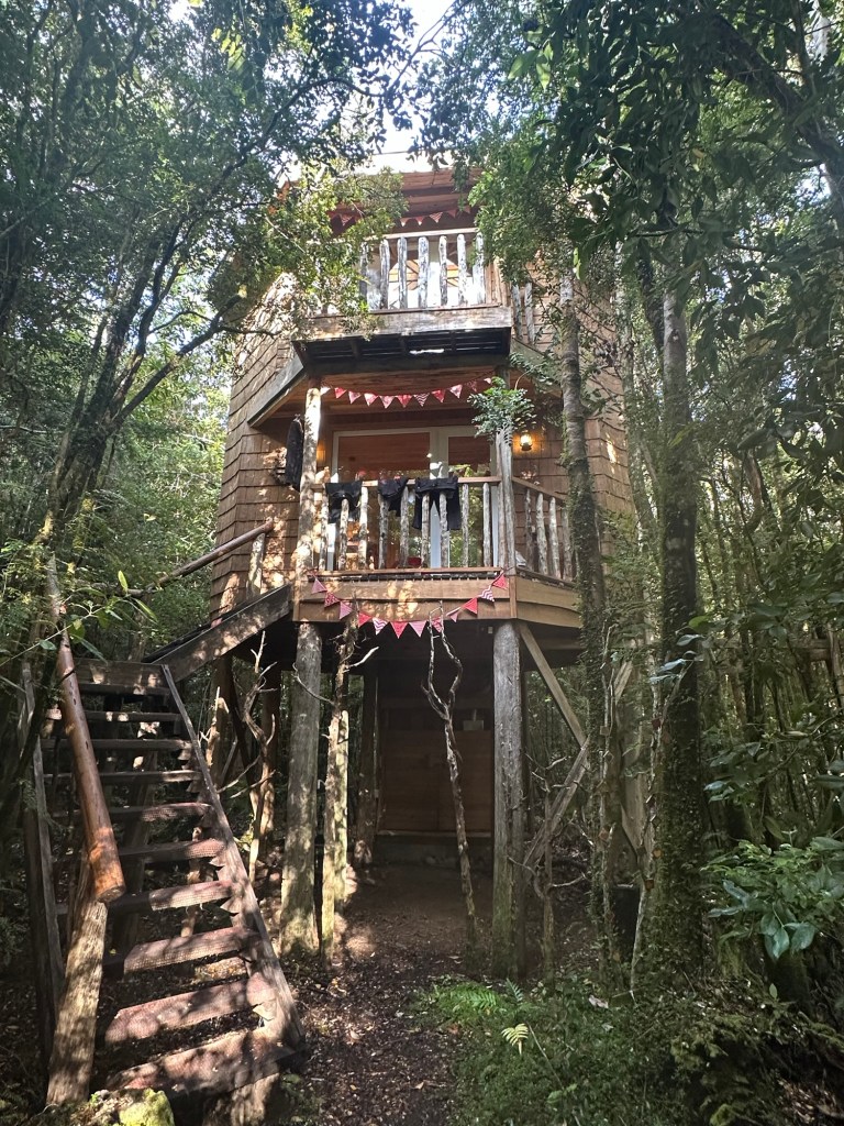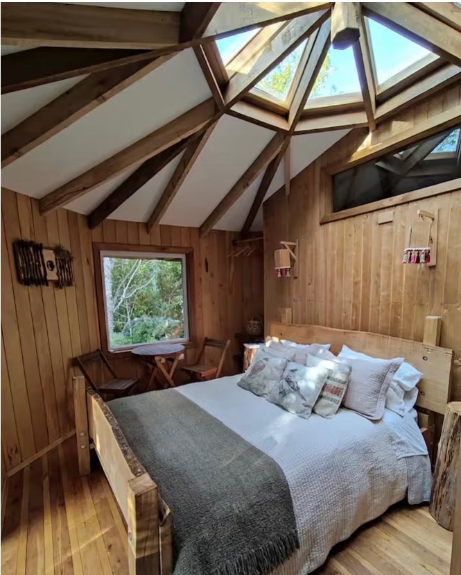 We moved in La Casa de la Abuelita de Caperucita (Little Red Riding Hood’s Grandmother’s House) near Chiloé’s Lago Huillinco. It was a freestanding treehouse in the forest. An amazing place. Its all a rainforest.The octagonal skylightMornings are well-lit, and nights are starry.What I found most amazing was the bathroom sink carved entirely out of one piece of wood. Wood of the Mañíotree I think.