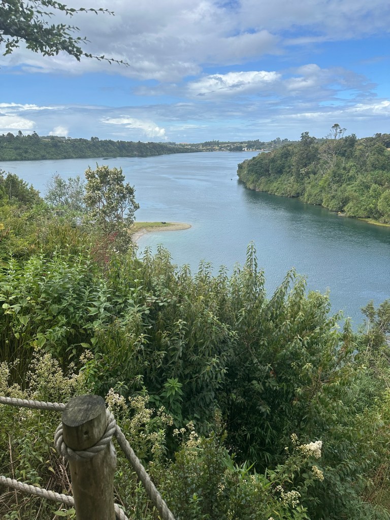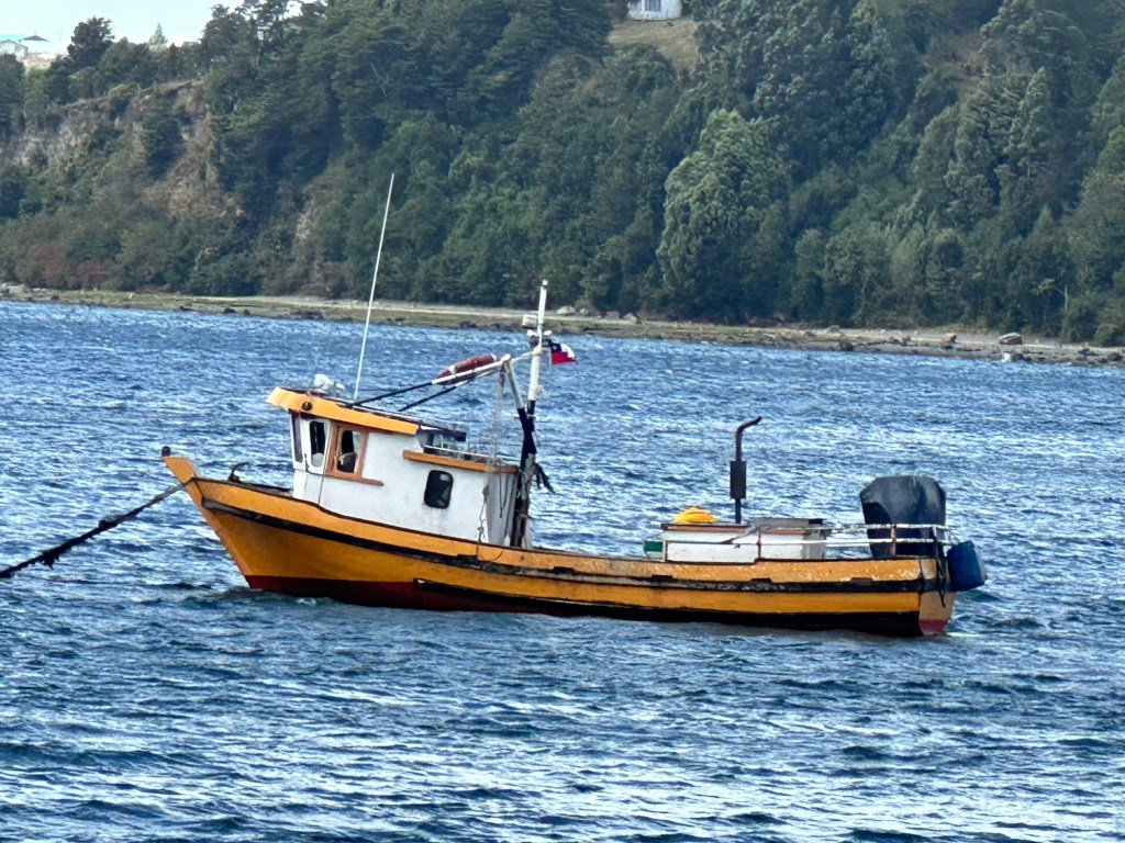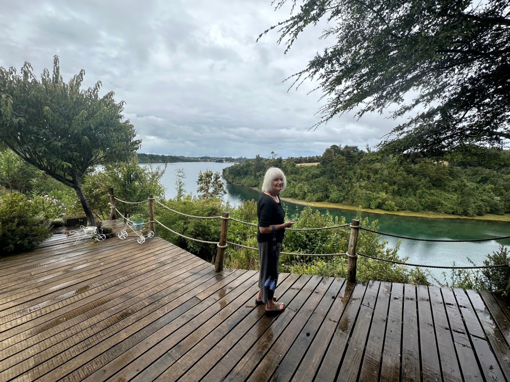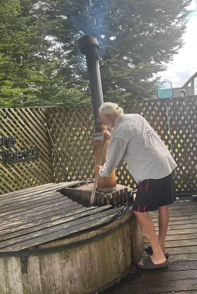 We stayed at an Airbnb that overlooked a good-sized arm of the sea and a smaller estuary. This is from our deck. Tides were over 6 meters (around 20 feet). This is high tide.Oh, and this is the view from our tinaja (wood fired hot tub).Carved wooden paddle for mixing up the heated water in the tinaja.Rain happened… then the sun would come out. Rinse and repeat. I enjoyed walking down the path to the beach and checking out all the tied up wooden boats at low tide.
