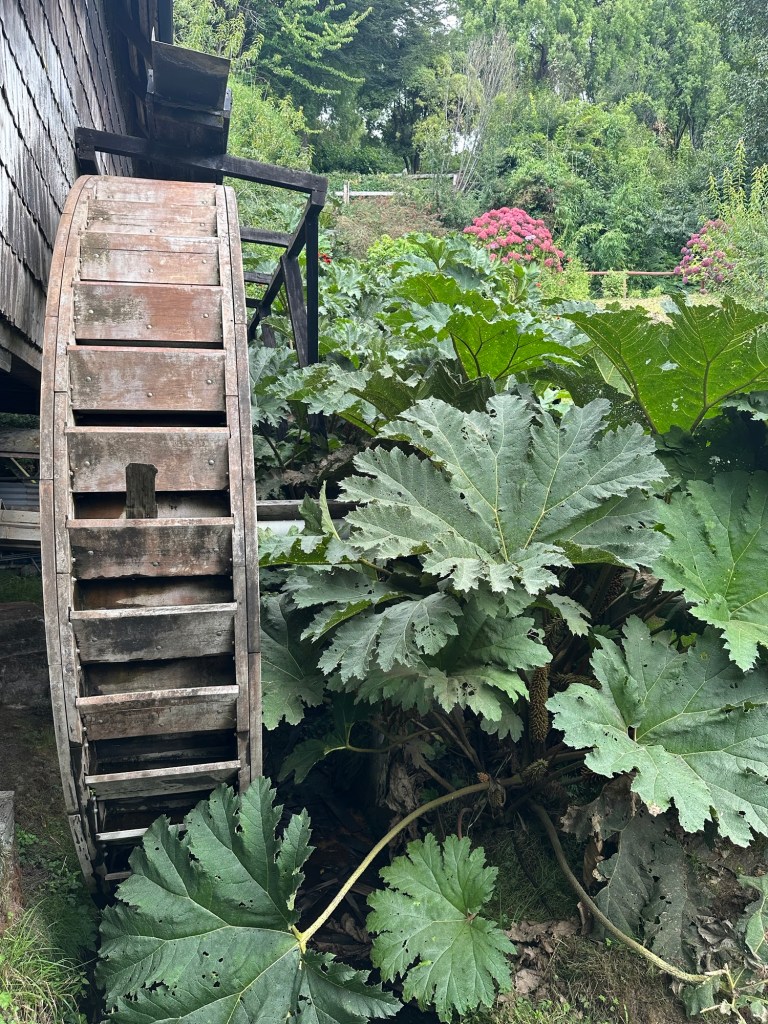 We visited the German Colonial Museum, showcasing the history of German immigration to southern Chile in the mid-1800s.Their extensive flower gardens were blooming!Some beautiful dahliasBig leaf hydrangea We have seen more hydrangeas in Chile then ever in one place in our lives!Agapanthus (lily of the Nile)Did I mention fuschia?More dahliasancient Farmall tractor now yard artLet’s go bowling!New Zealand Flaxtravel trailerWater wheel and Chilean Rhubarb